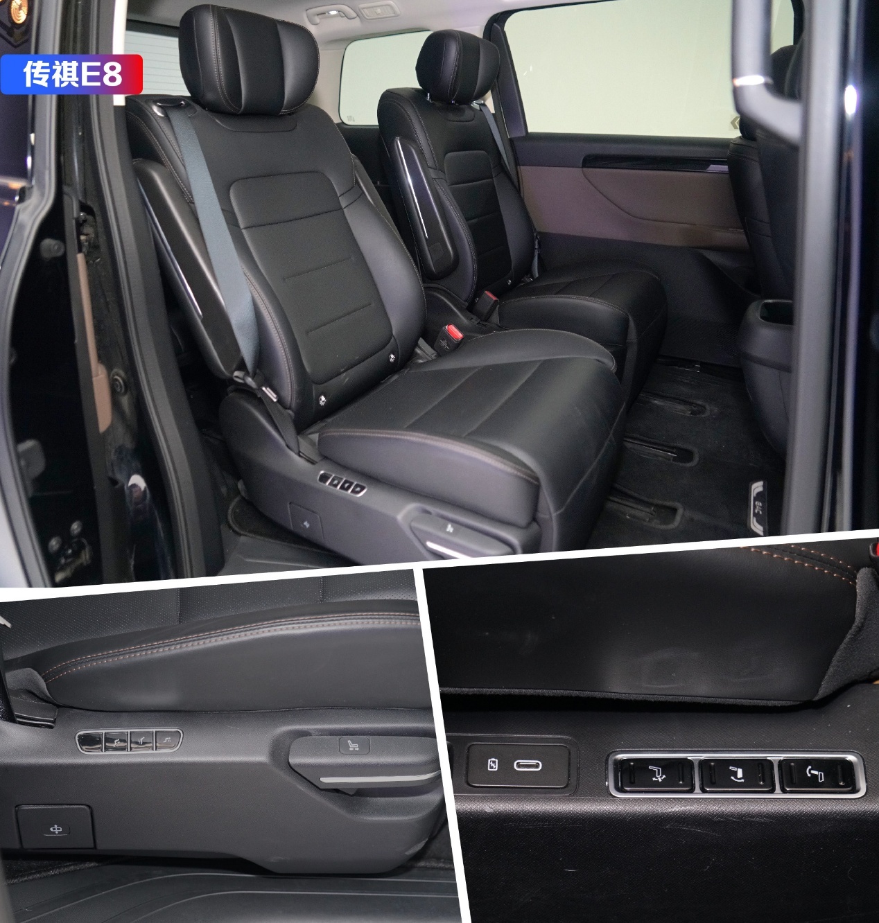 如果说体型是先天决定,那配置是可以靠后天补齐的,空间吝啬的传祺E8在这方面还算大方。两台车都想着给后排家人最好的体验,什么加热、通风、按摩一应俱全。座椅的前后、左右、靠背也都能调,怎么舒服怎么来。