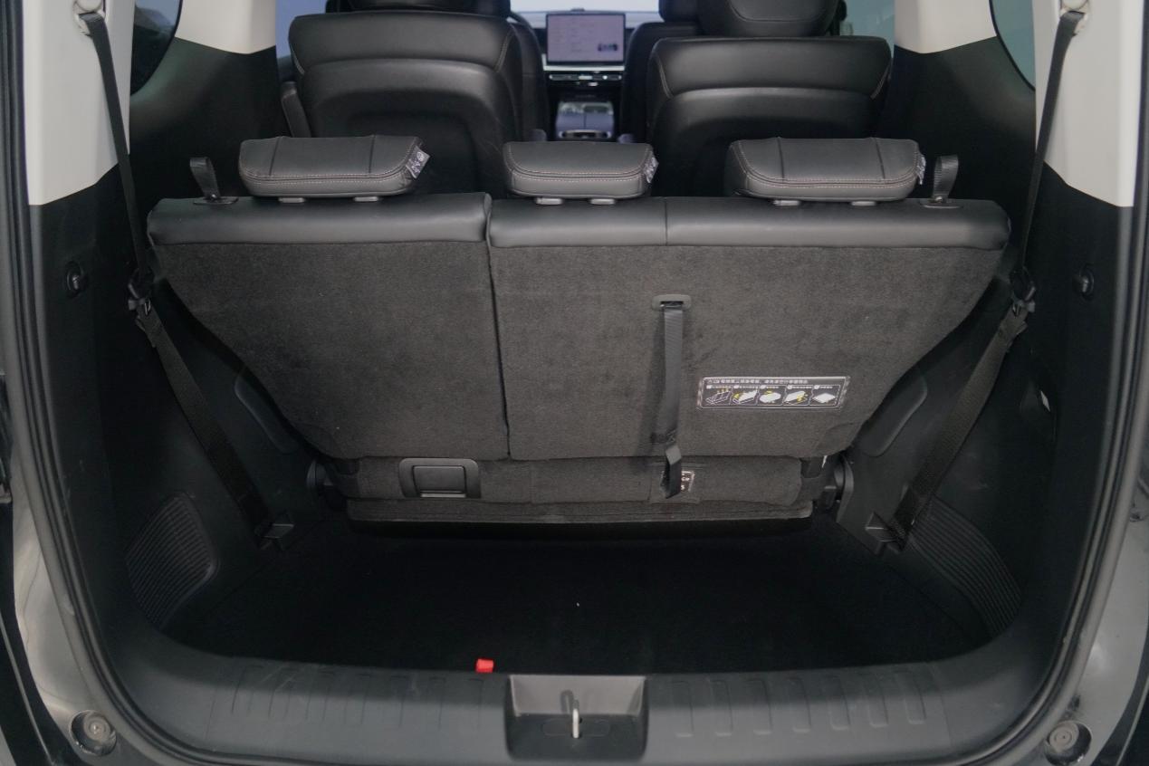 更惊艳的是,星海V9的第三排座椅不仅能整体隐藏,还支持分段隐藏。要是只有5-6个人出门还带了很多行李,你完全可以把第三排不用的座位隐藏起来,让后备厢空间最大化利用,既坐得舒服,又能装更多东西。