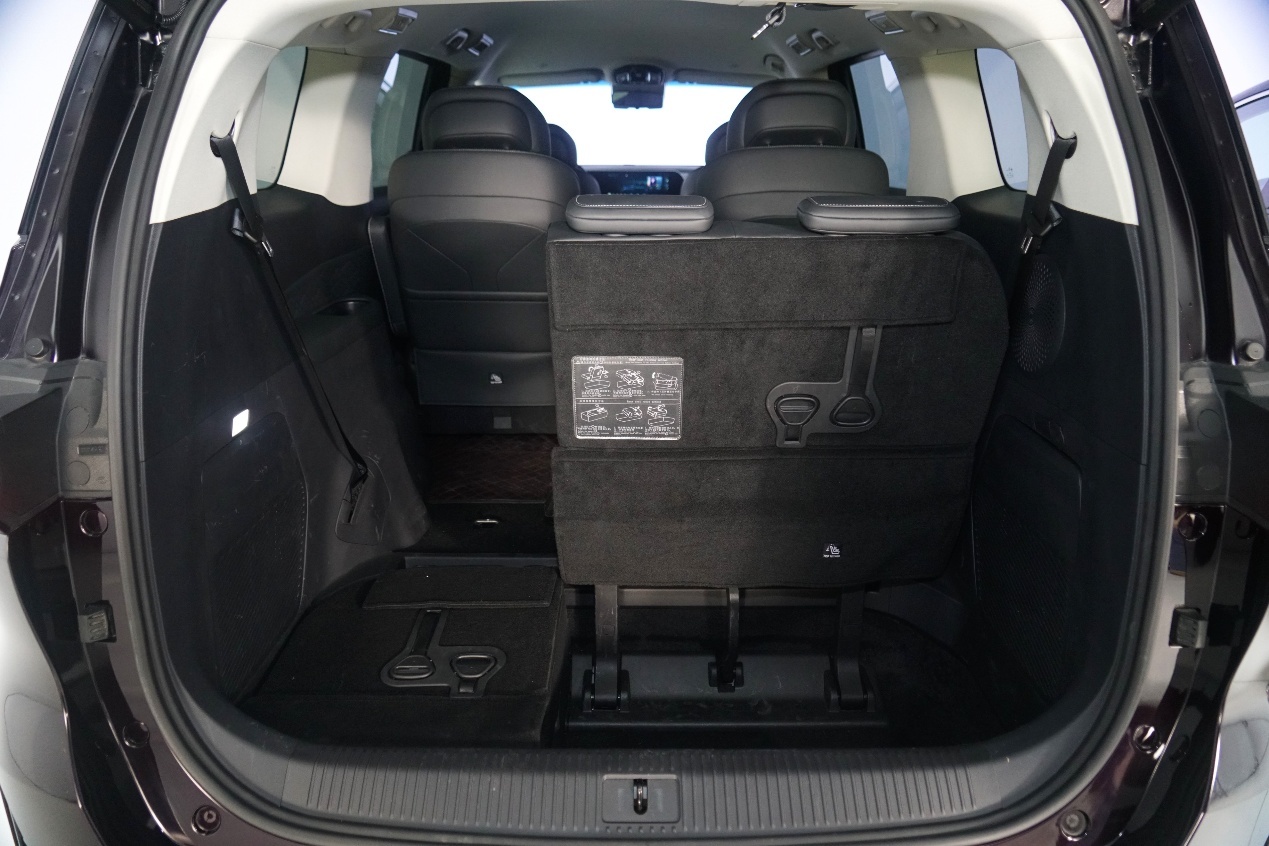 日常市区出行不用那么多座椅时,星海V9的第三排座椅可以整体隐藏到之前提到的下沉空间内,隐藏后即可得到一个大4座乘坐空间和2616L的超大行李厢空间,搬个小家都绰绰有余了。
