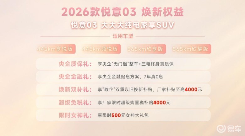2026款悦意03上市:20余项升级,售价7.98万起