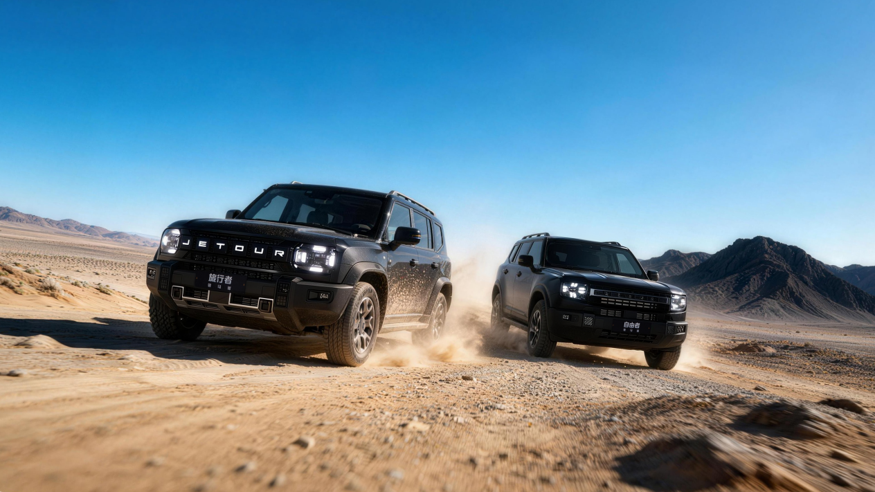 从产品定位来看,两款车型在保持硬派基因的同时也呈现出差异化分工。旅行者骏马版更侧重于长途穿越与复杂路况的应对能力,内饰采用硬派豪华软包材质,配备64英寸全景天窗,搭载高通骁龙8155芯片与L2级智能辅助驾驶系统。