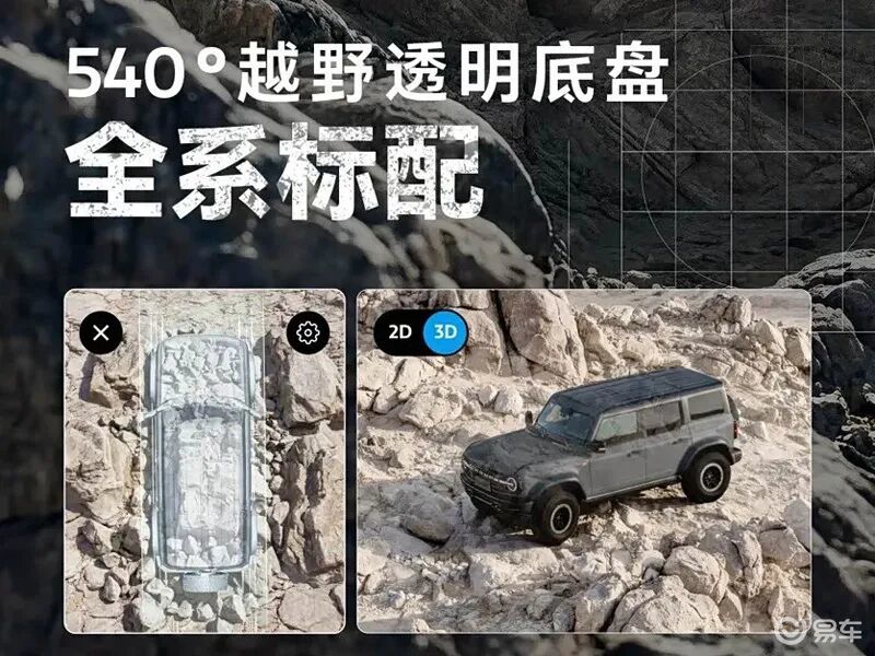 越野配置上,2026款福特烈马全系标配540°越野透明底盘,提供H.O.S.S. 3.0赛级悬架系统,配备FOX 2.5''内路旁通氮减,提供原厂35英寸大脚车轮和原厂可断开防倾杆。并且新款烈马还支持G.O.A.T.全地形智能管理系统,提供7大驾驶模式,支持透明底盘联动。
