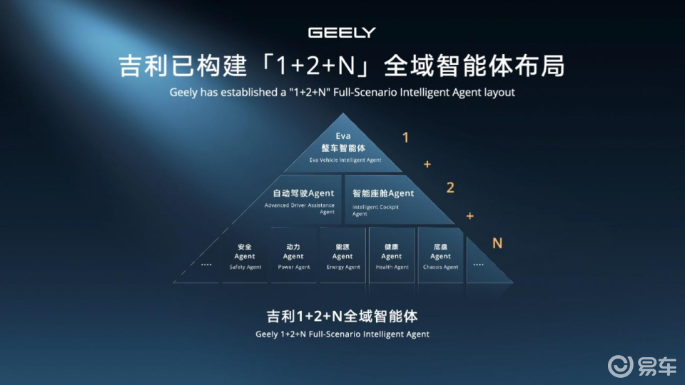 Eva Cab的横空出世,从来不是风口之下的跟风之作,而是吉利多年深耕AI基建的必然结果。当不少车企还在把AI当成营销噱头时,吉利早在2021年就启动基础大模型研发,发布了汽车行业全栈自研的全场景AI大模型;2022年建成行业首个云数智一体超级智算中心,如今综合算力已达23.5EFLOPS,稳居中国车企算力第一。从2025年发布行业首个全域AI技术体系,到2026年全域AI进化到2.0时代,吉利打造了行业唯一的“1+2+N”全域智能体布局,让AI能力覆盖动力、底盘、座舱、智驾的整车全域,实现了从技术研发、量产落地到生态运营的全链条打通。