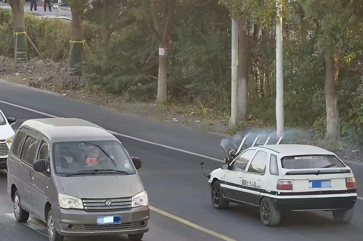“等等!86上山了!”不是,86上路了,还带着8个涡轮?!这到底是什么玩意?近日,网友分享了一段视频,一辆有着拓海AE86同款涂装的神龙富康开在路上,十分引人注意。