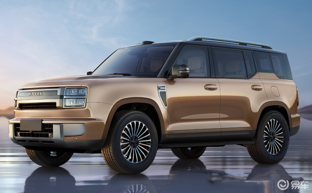 外观采用硬派方盒子设计,线条平直硬朗,前脸配备矩阵式LED大灯与贯穿式“HAVAL”字母标识,前脸配备矩形大灯组与半封闭式格栅,融合新能源车型的科技感与硬派SUV的力量感;车顶集成激光雷达模组与行李架,既强化高阶智驾属性,又兼顾户外实用需求。侧面来看,新车保留传统机械式门把手与侧踏板。尾部方面,新车采用外挂备胎接口与侧开尾门,延续硬派越野经典元素。